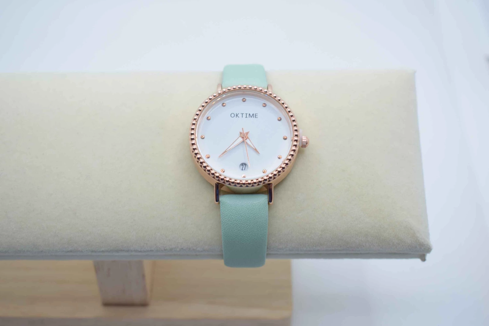 FILCOR - Bigiotteria, Oggettistica, Arredo casa e altro - OROLOGIO CINGHIA CUOIO VERDE CHIARO QUADRANTE BIANCO