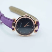 FILCOR - Bigiotteria, Oggettistica, Arredo casa e altro - OROLOGIO CINGHIA CUOIO VIOLA QUADRANTE NERO BRILLANTINATO